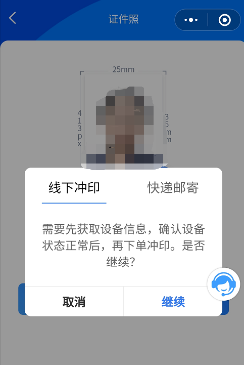 调整使用前置摄像头,可以选择拍照或从相册选择已经修好的照片;拍照完成后点击下单打印,根据需求选择快递邮寄或者线下冲印。